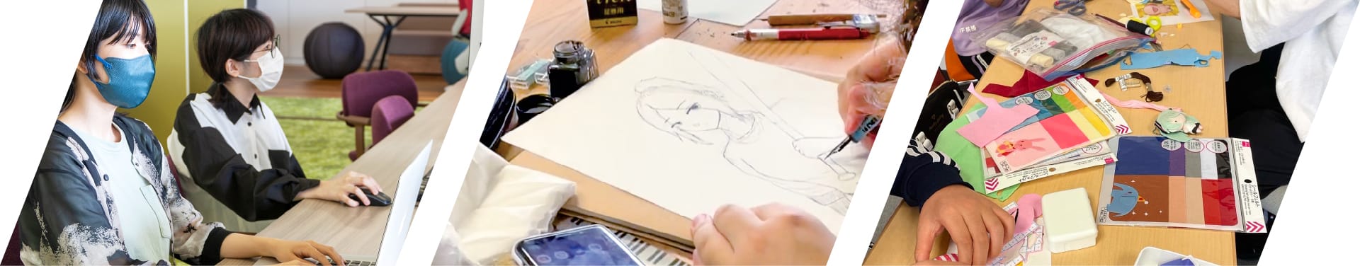 デザインやイラスト、マンガ、キャラクター、ライティング、造形など、やりたいことを自分で決めてチャレンジします。